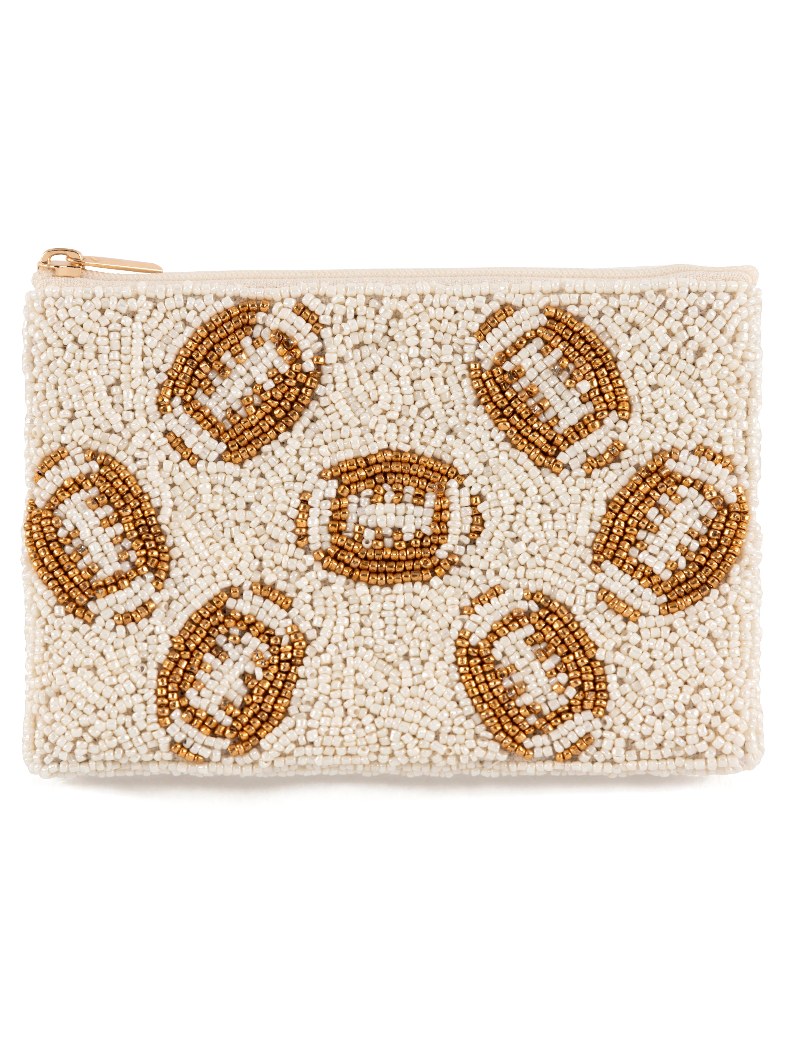 Shiraleah Footballs Beaded Zip Pouch, Ivory