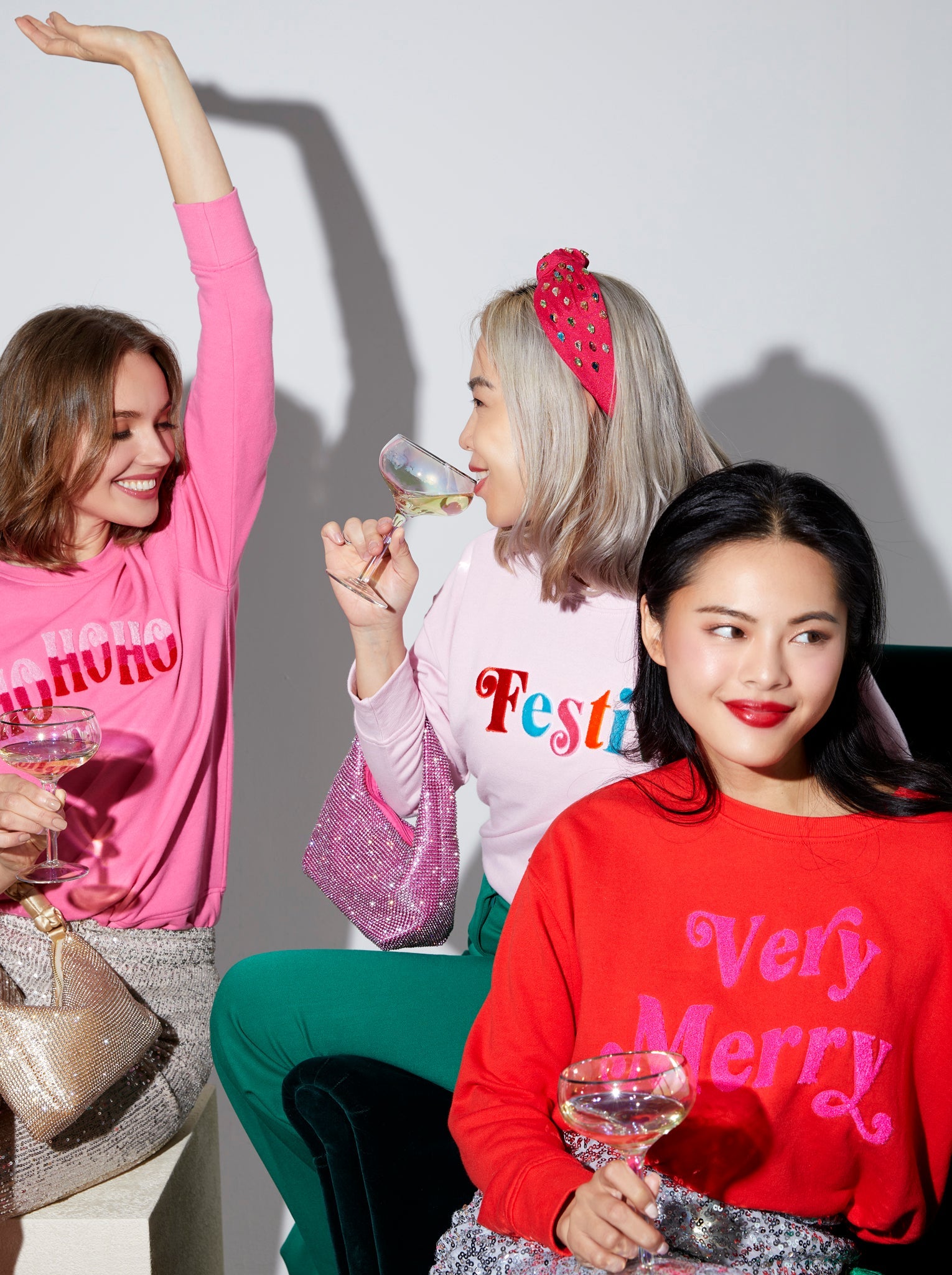 Assorted Set Of 6 "Very Merry" Sweatshirts, Red